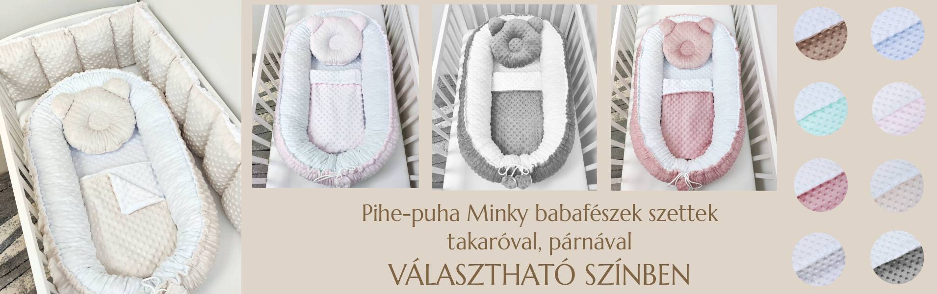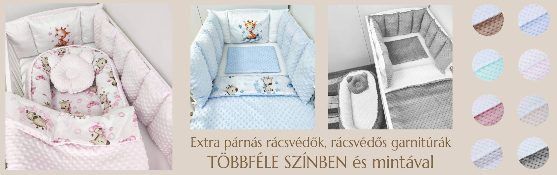 Kínálatunkban minőségi babatextíliákat, babaágyneműket, babafészkeket, fonott rácsvédőket, babaszoba kiegészítőket találsz. Termékeink magyar termékek, bababarát anyagokból készülnek.