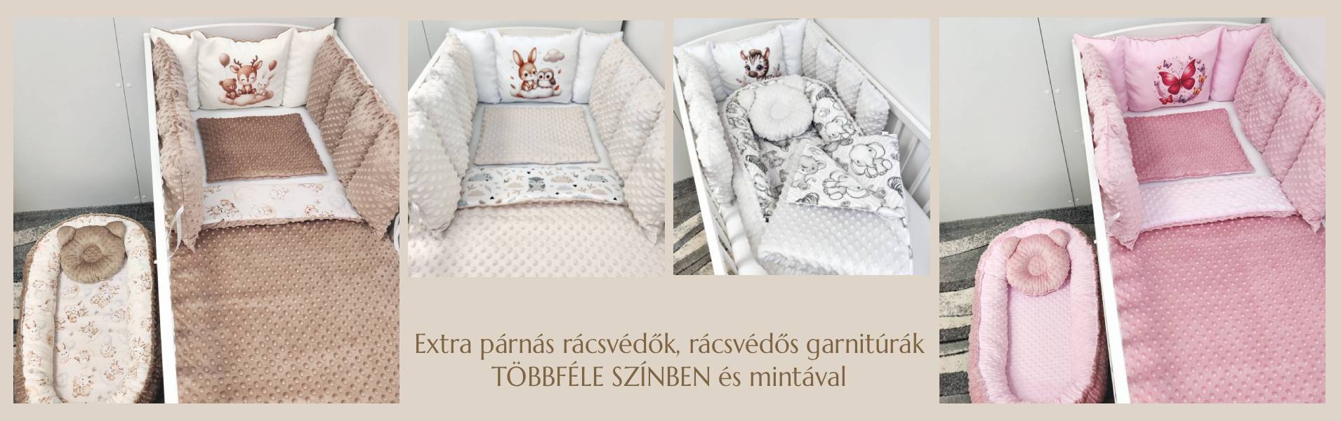 Kínálatunkban minőségi babatextíliákat, babaágyneműket, babafészkeket, fonott rácsvédőket, babaszoba kiegészítőket találsz. Termékeink magyar termékek, bababarát anyagokból készülnek.