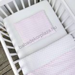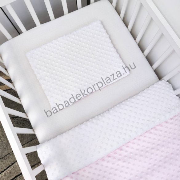Deluxe Baby 3 részes Minky babaágynemű garnitúra - takaró + párna + fonott rácsvédő - világos rózsaszín - fehér - mályvarózsa