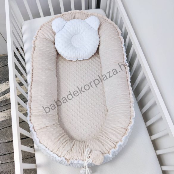 Deluxe Baby babaágynemű garnitúra babafészekkel, felhőpárnás rácsvédővel - fehér - mogyoró - vanília