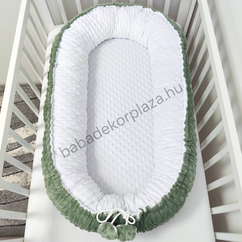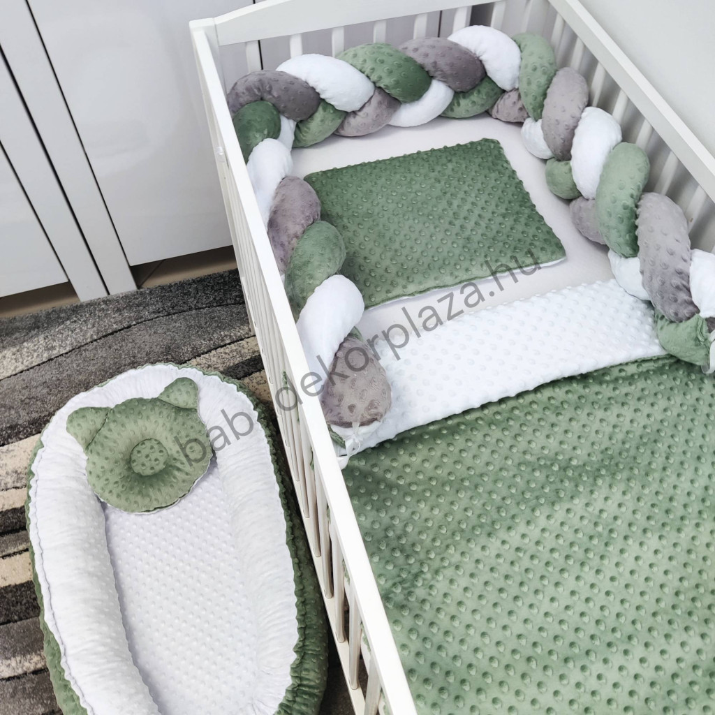 Deluxe Baby Minky babaágynemű garnitúra babafészekkel - 5 részes - sötét zsályazöld - fehér - grafit