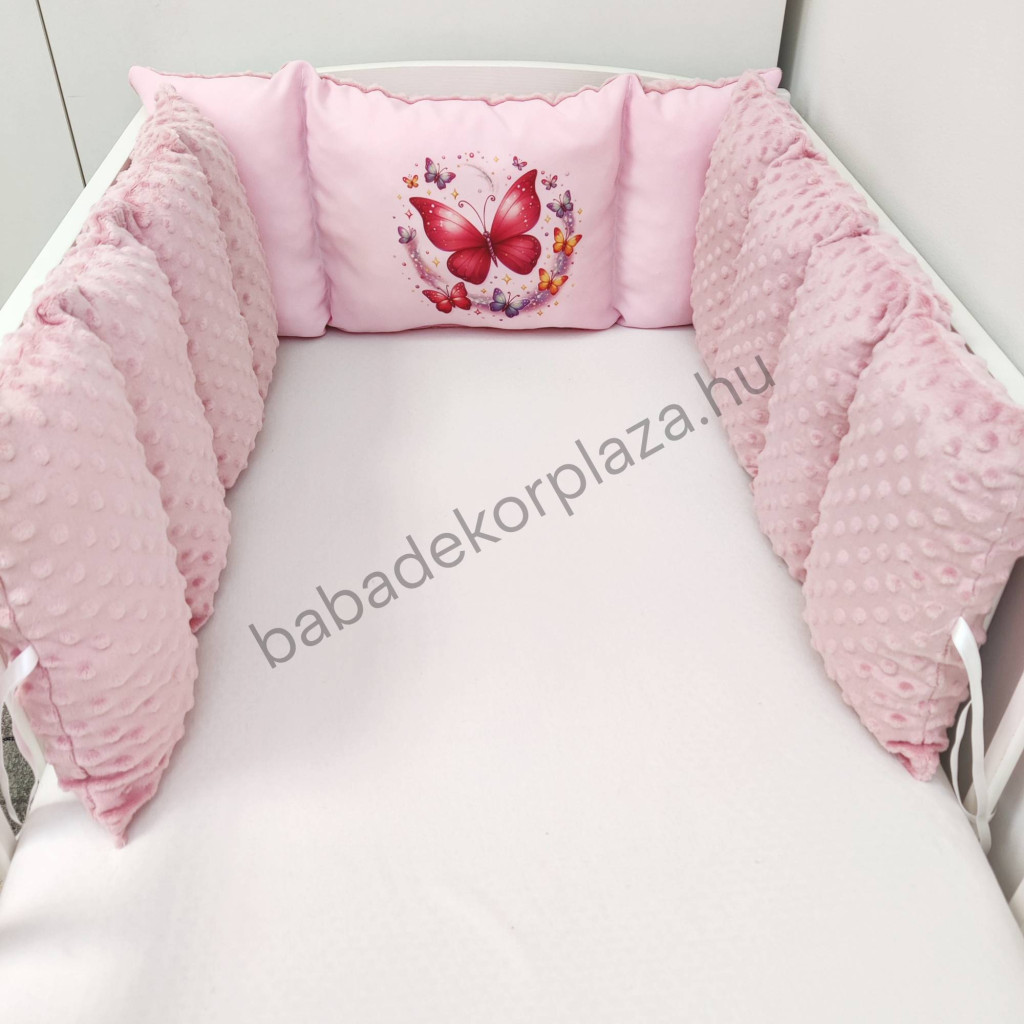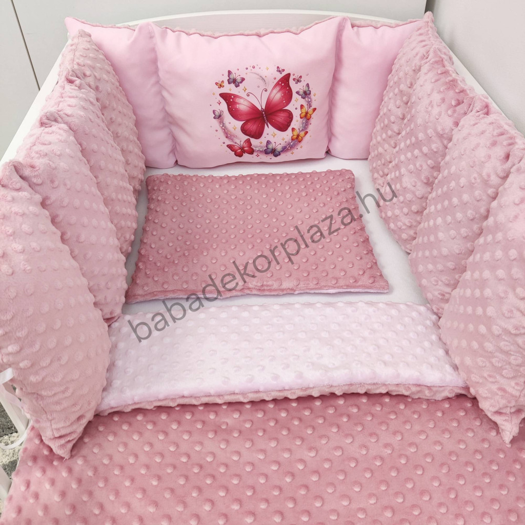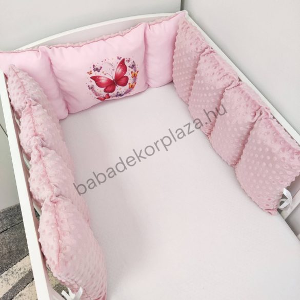 Deluxe Baby Minky babaágynemű garnitúra babafészekkel, Extra párnás rácsvédővel - Dreamland Collection - mályvarózsa - rózsaszín pillangók