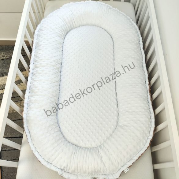Deluxe Baby babaágynemű garnitúra babafészekkel, felhőpárnás rácsvédővel - fehér - cappuccino - mogyoró