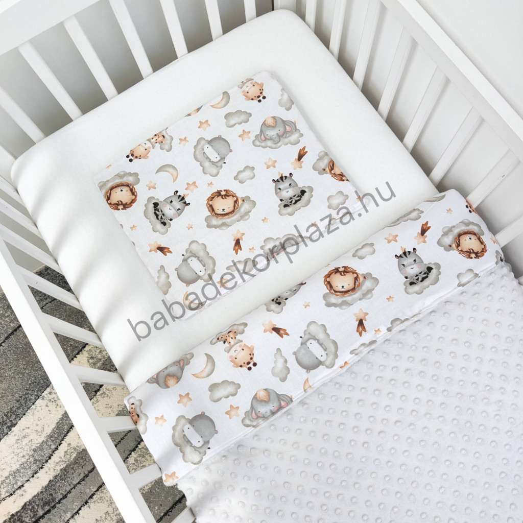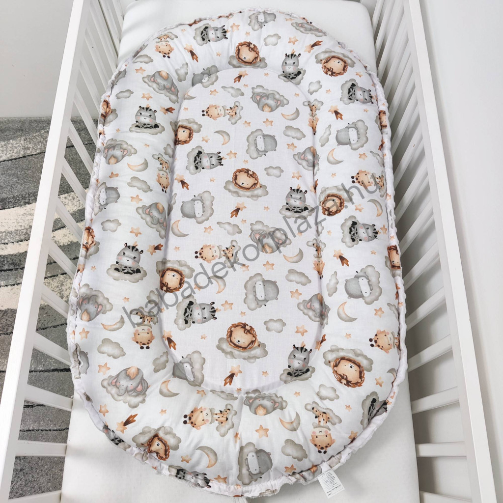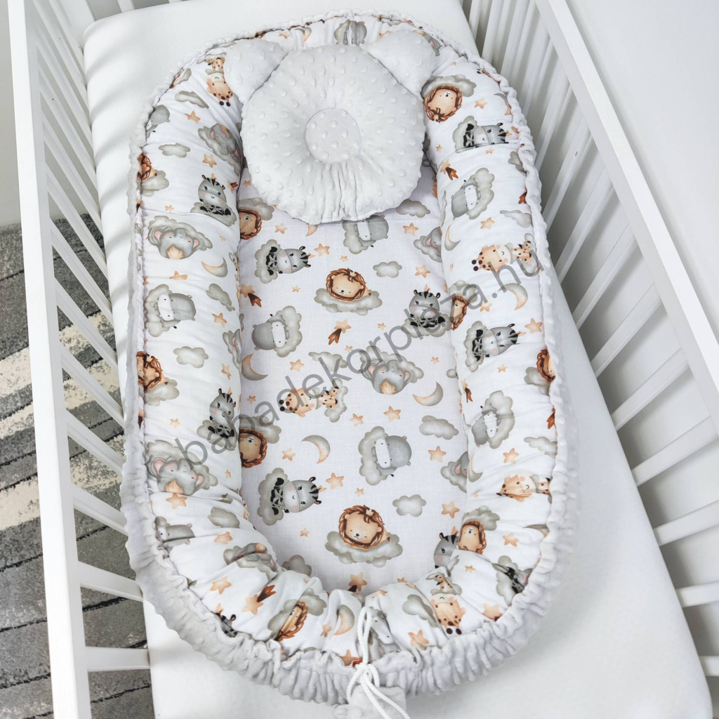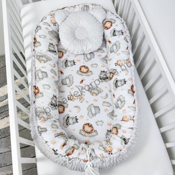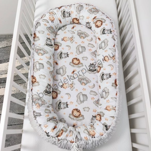 Deluxe Baby babaágynemű garnitúra babafészekkel - 5 részes - szürke - vidám szafari