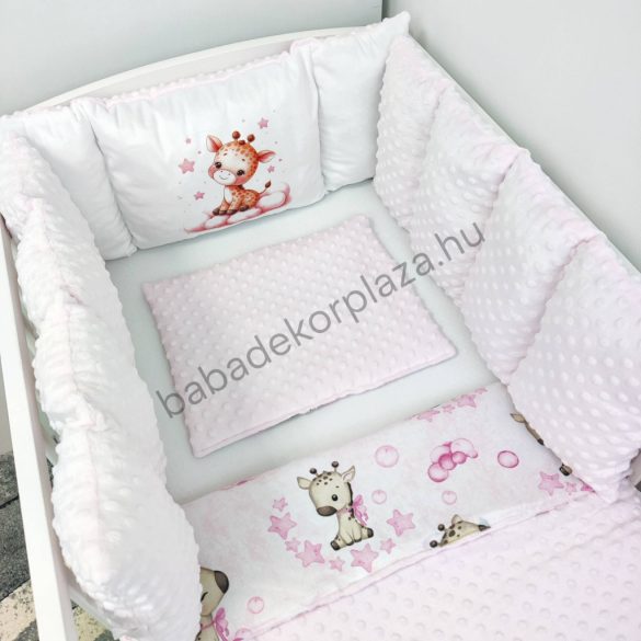 Deluxe Baby babaágynemű garnitúra Extra párnás rácsvédővel - Dreamland Collection - rózsaszín bébi zsiráf
