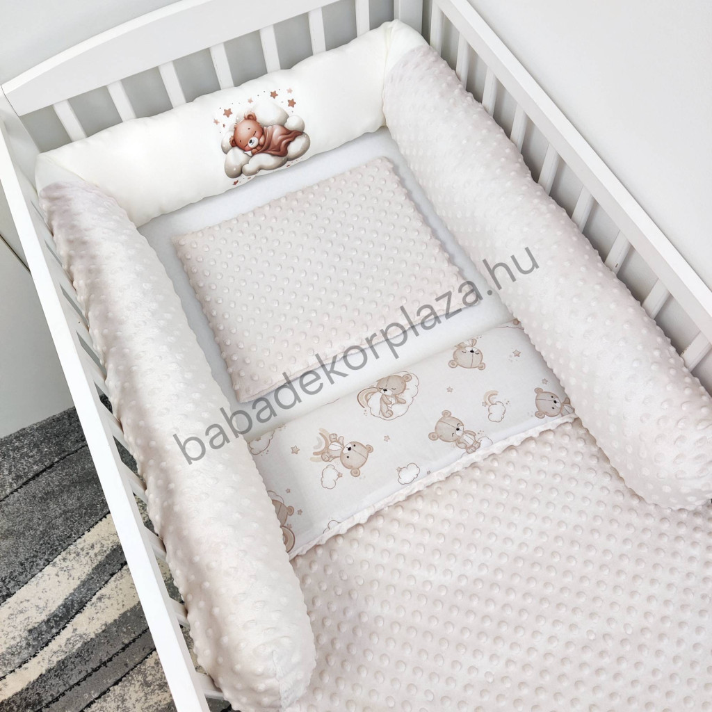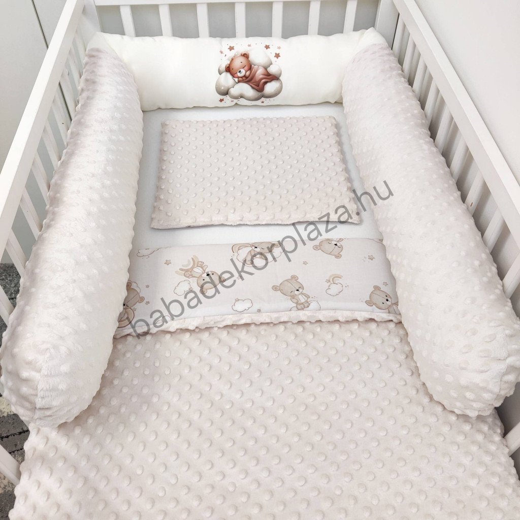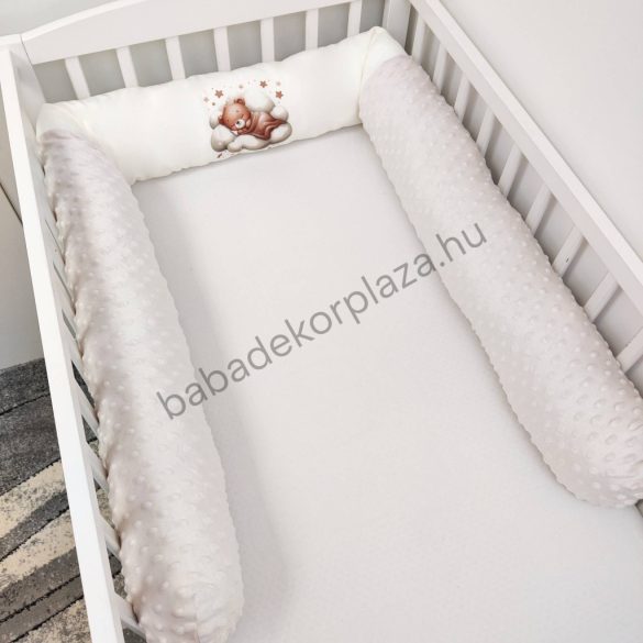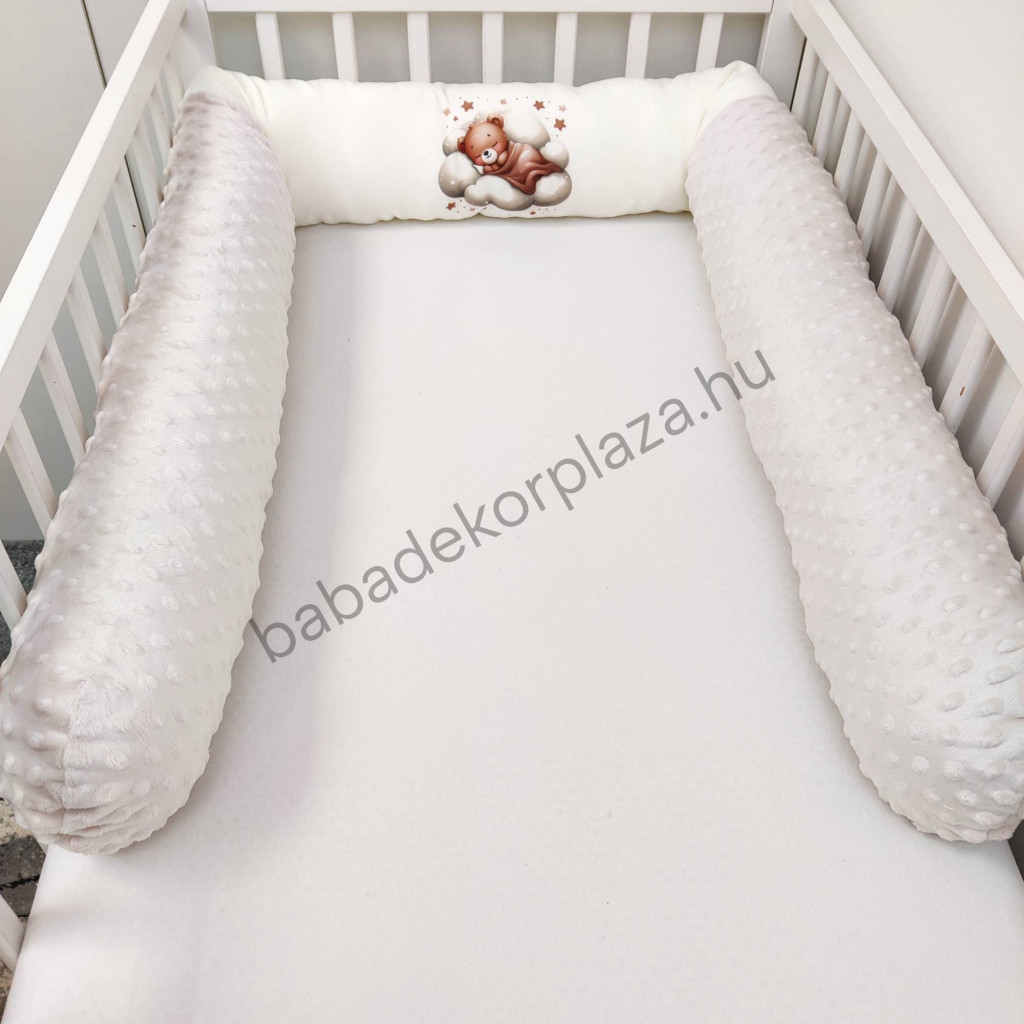 Hengerpárnás rácsvédő extra puha minőségi, bababarát Minky és vidám mintás anyagból.