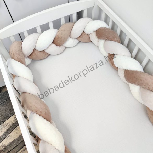 Deluxe Baby 3 részes babaágynemű garnitúra - takaró + párna + fonott rácsvédő - Cappuccino - bébi szafari III.