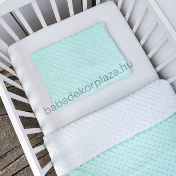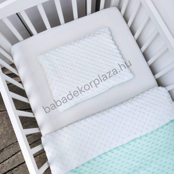 Deluxe Baby 3 részes Minky babaágynemű garnitúra - takaró + párna + fonott rácsvédő - menta - fehér - szürke