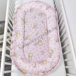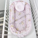 Deluxe Baby babaágynemű garnitúra babafészekkel - 5 részes - világos rózsaszín - cuki macik II.