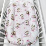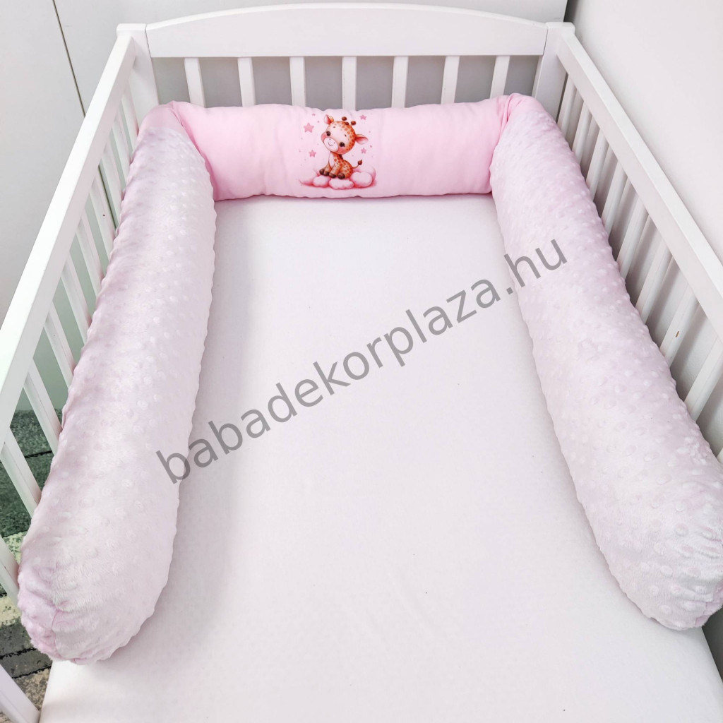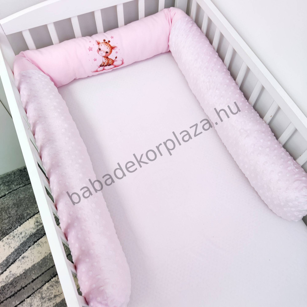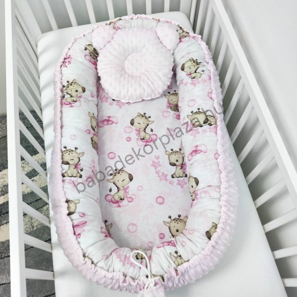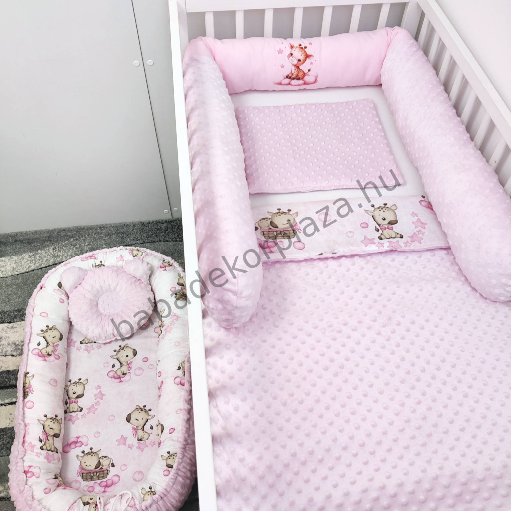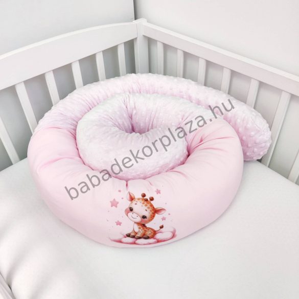 Deluxe Baby babaágynemű garnitúra babafészekkel, hengerpárnás rácsvédővel - rózsaszín bébi zsiráf