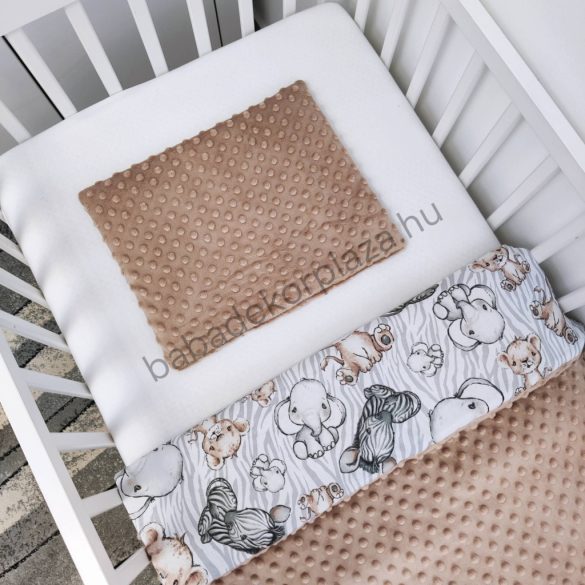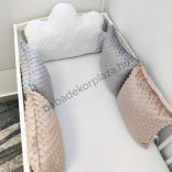 Deluxe Baby babaágynemű garnitúra babafészekkel, felhőpárnás rácsvédővel - fehér - cappuccino - grafitszürke - bébi szafari