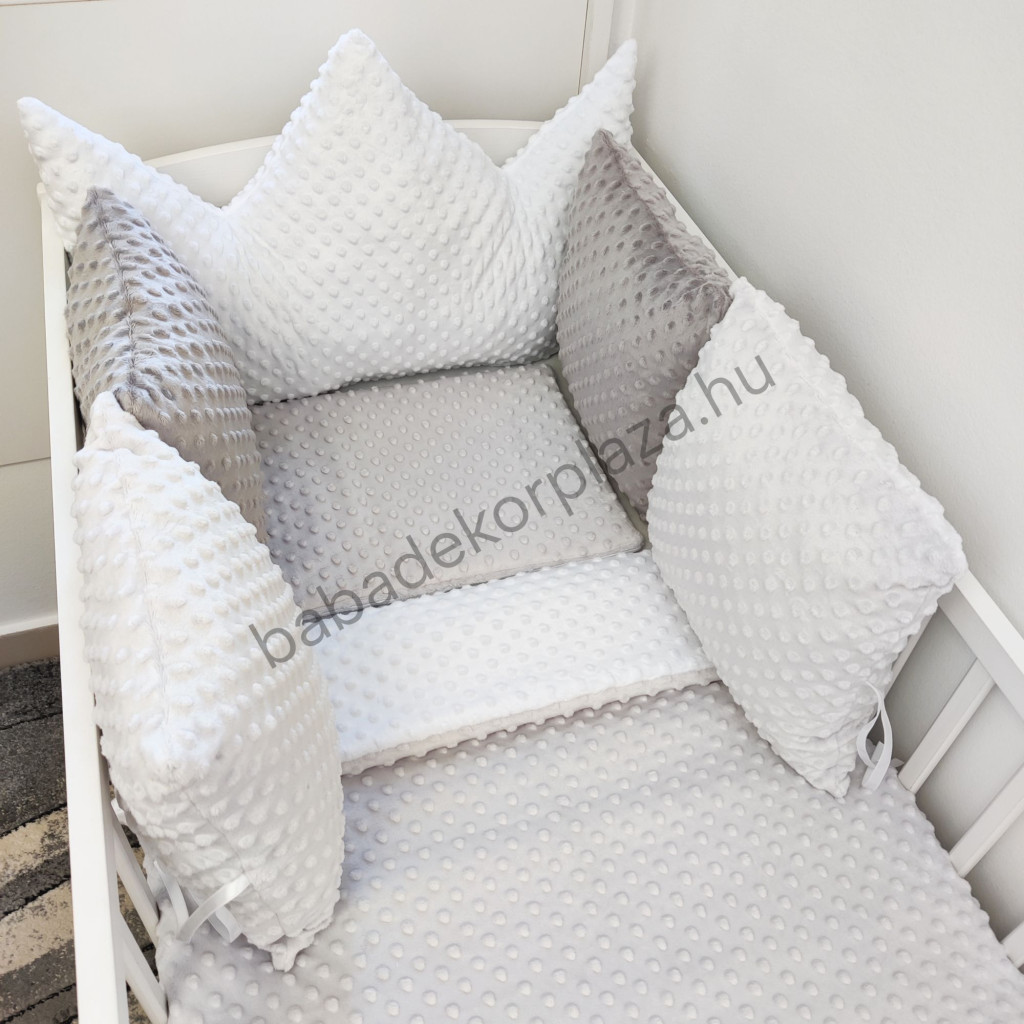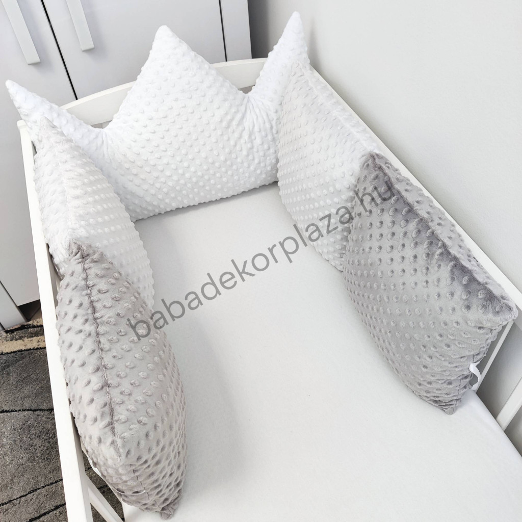 Deluxe Baby babaágynemű garnitúra koronapárnás rácsvédővel - fehér - szürke - grafit