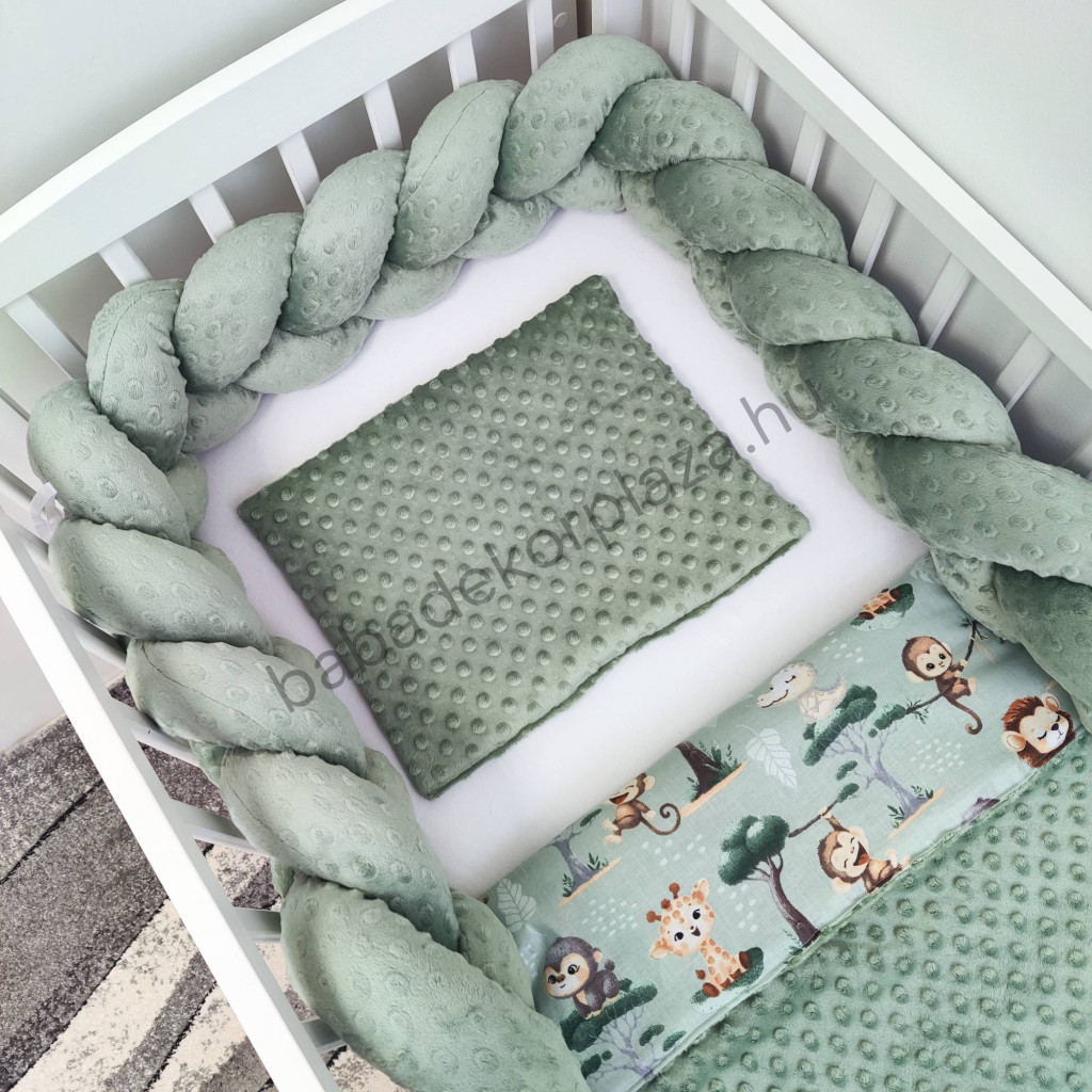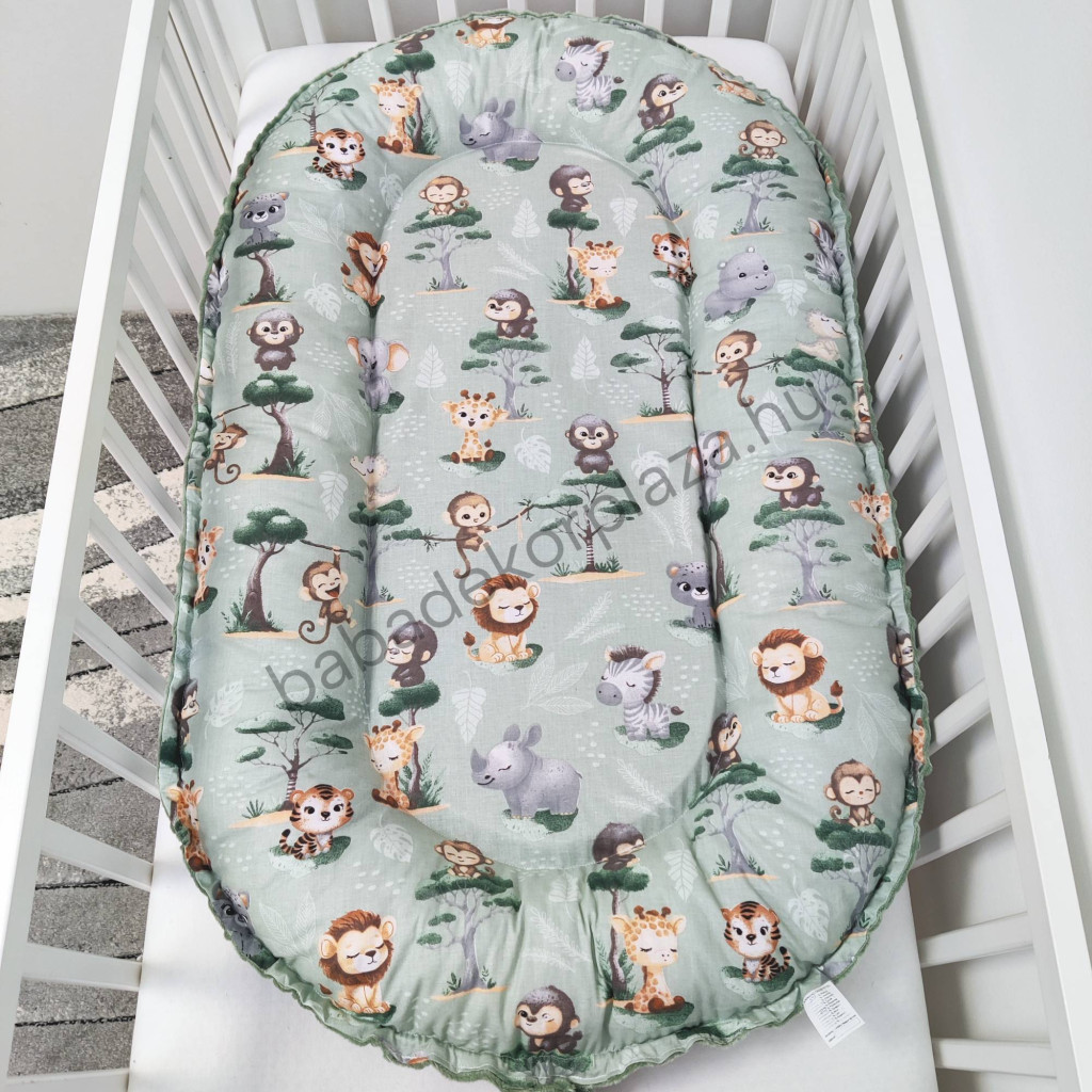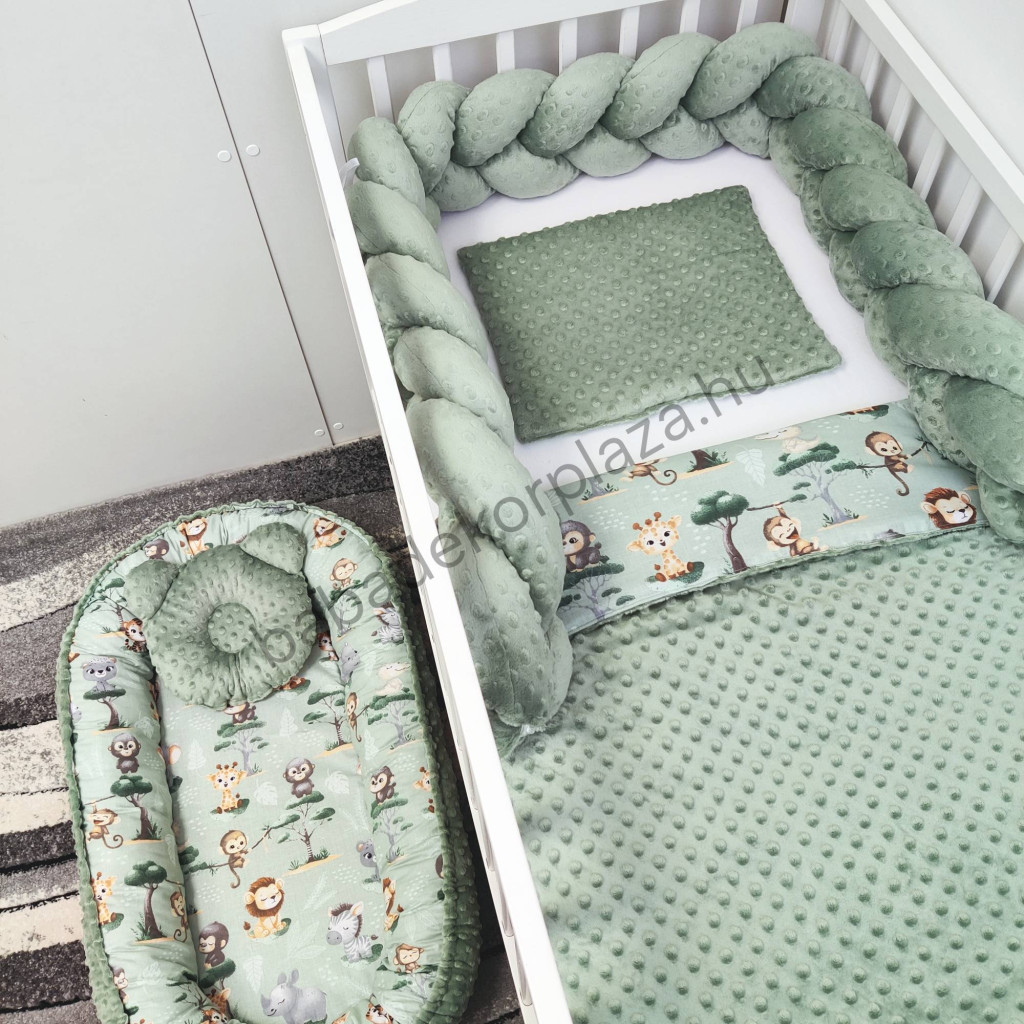 Deluxe Baby babaágynemű garnitúra babafészekkel - 5 részes - sötét zsályazöld - szafari kölykök II.