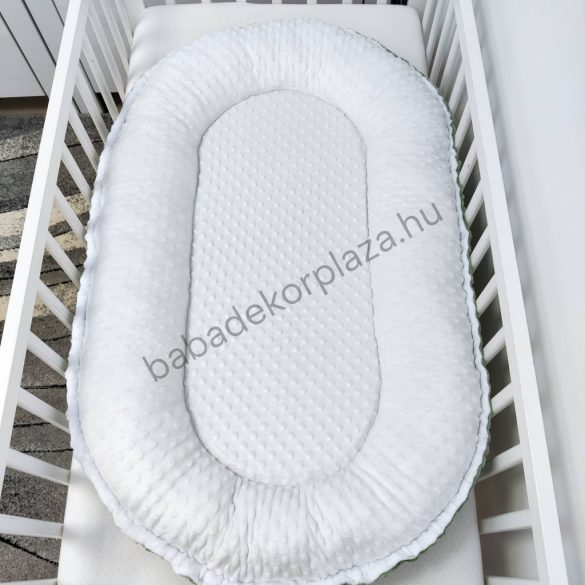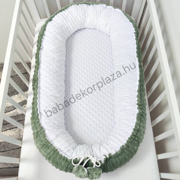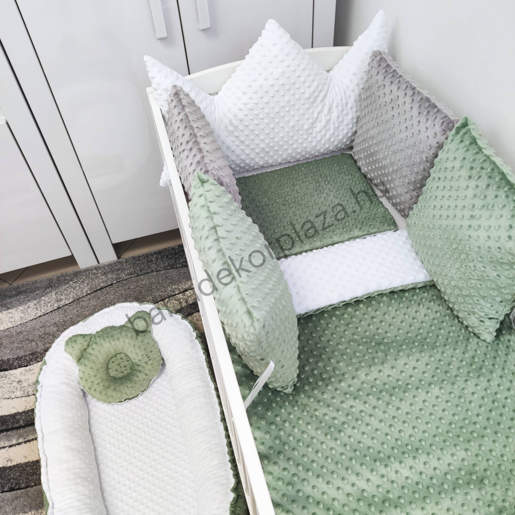 Deluxe Baby Minky babaágynemű garnitúra babafészekkel, koronapárnás rácsvédővel - fehér - sötét zsályazöld - grafit