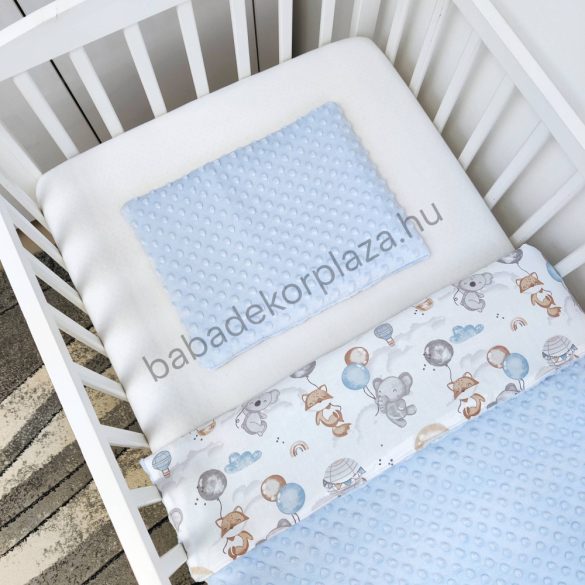 Deluxe Baby 3 részes babaágynemű garnitúra - takaró + párna + fonott rácsvédő - világoskék - léggömbös állatok