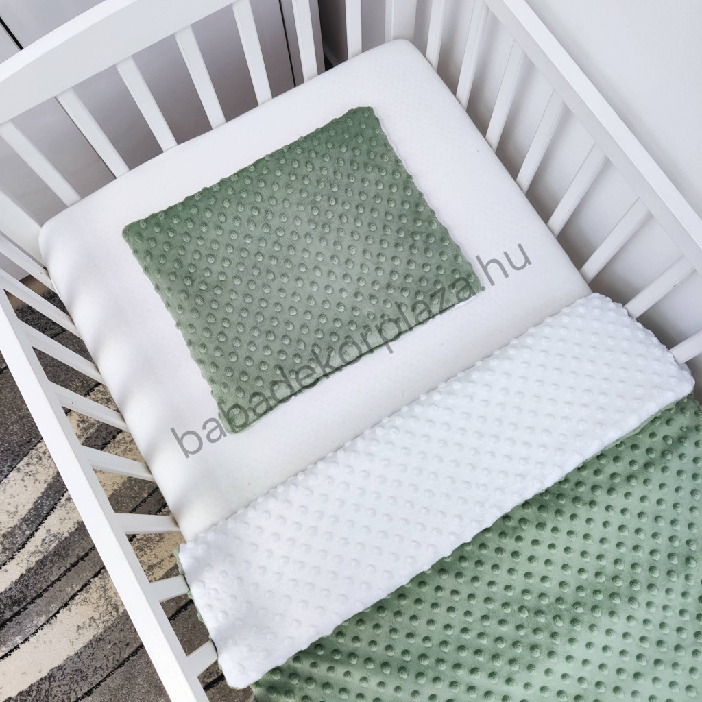 Deluxe Baby 3 részes Minky babaágynemű garnitúra - takaró + párna + fonott rácsvédő - sötét zsályazöld - fehér - antracit