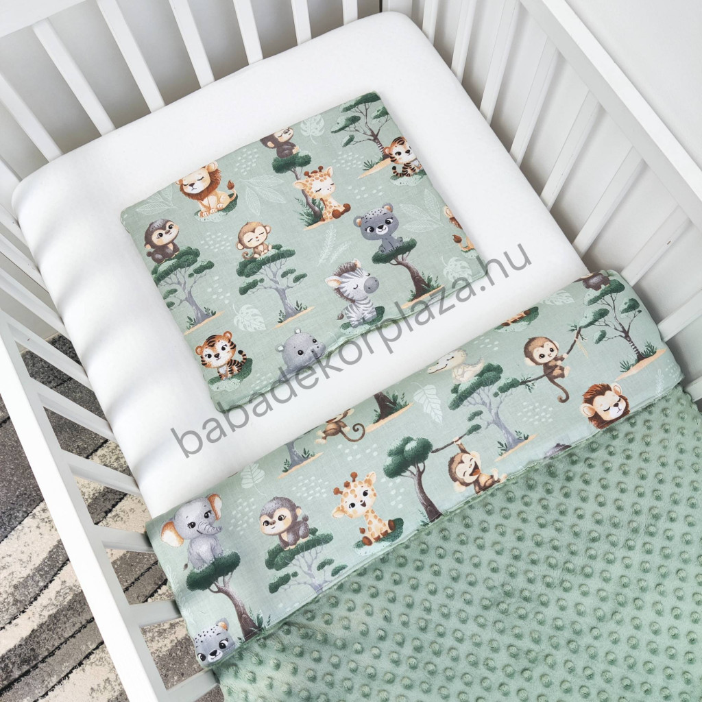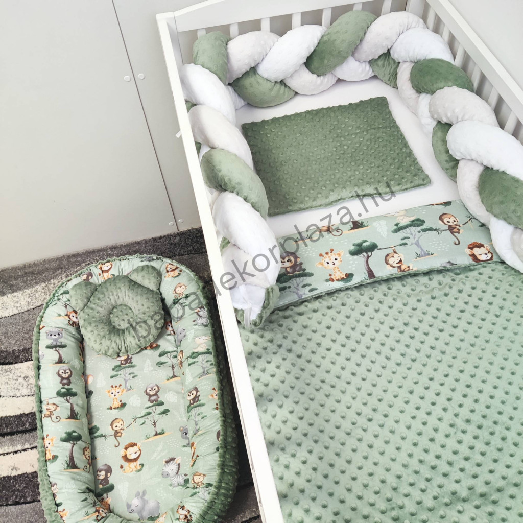 Deluxe Baby babaágynemű garnitúra babafészekkel - 5 részes - sötét zsályazöld - szafari kölykök I.