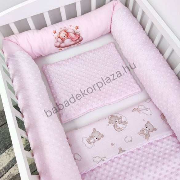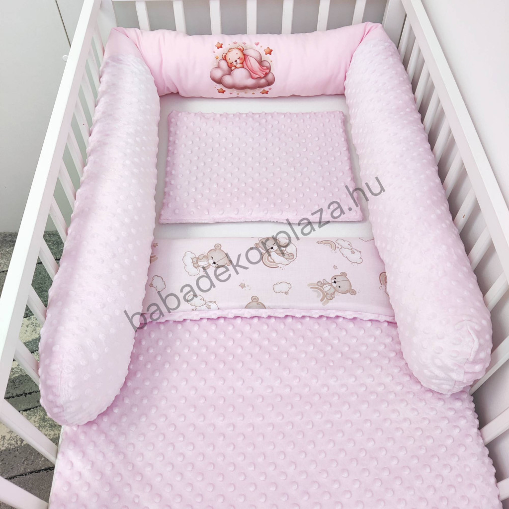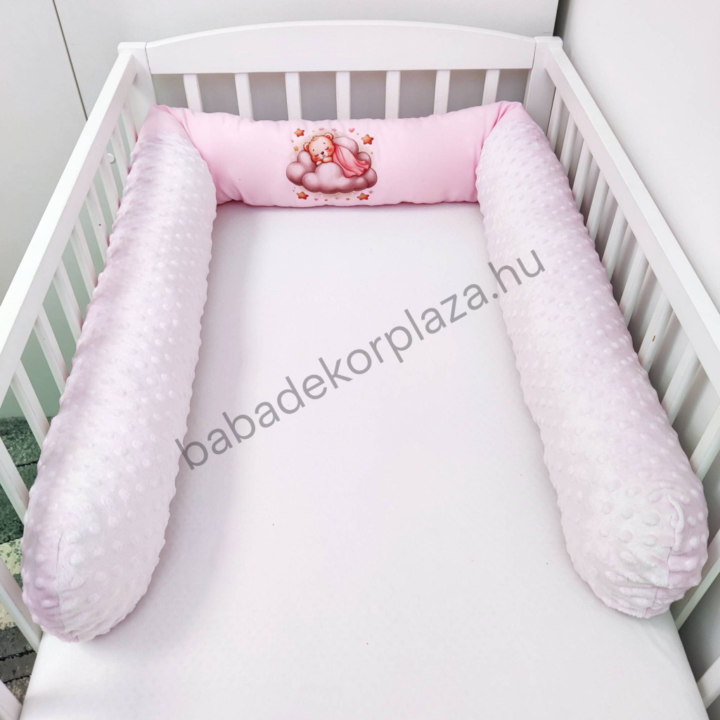 Hengerpárnás rácsvédő extra puha minőségi, bababarát Minky és vidám mintás anyagból.
