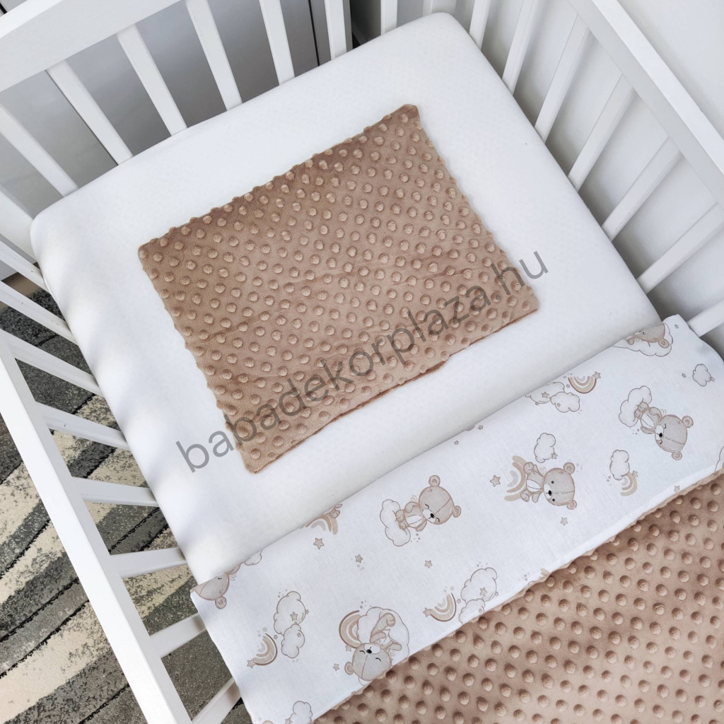 Deluxe Baby babaágynemű garnitúra felhőpárnás rácsvédővel - fehér - cappuccino - mogyoró - felhőn alvó macikák