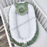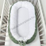 Deluxe Baby Minky babaágynemű garnitúra babafészekkel - 5 részes - sötét zsályazöld - fehér - antracit