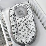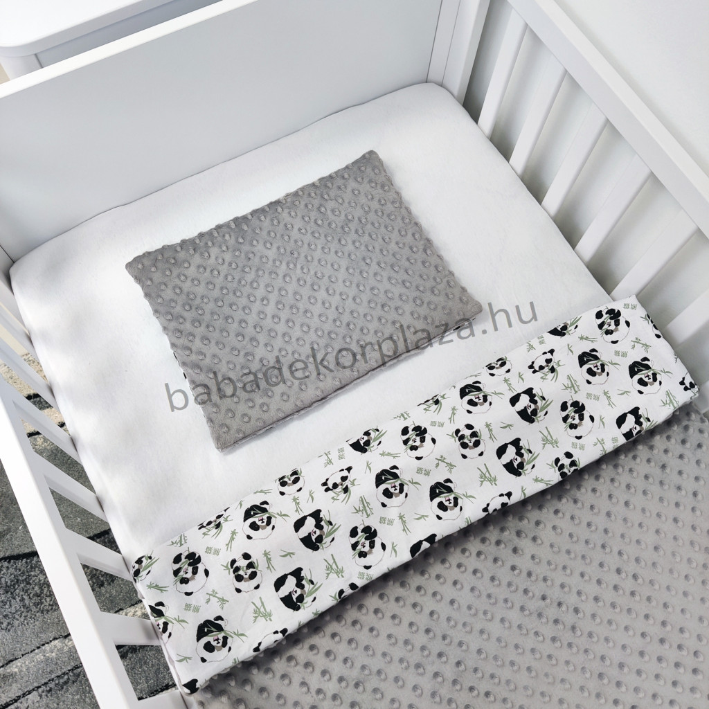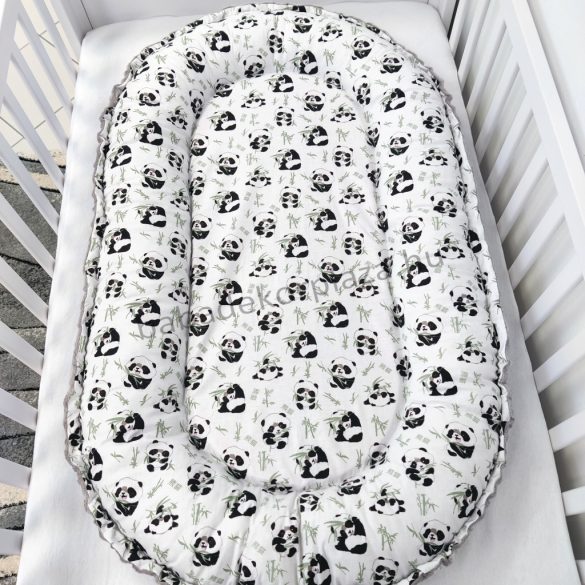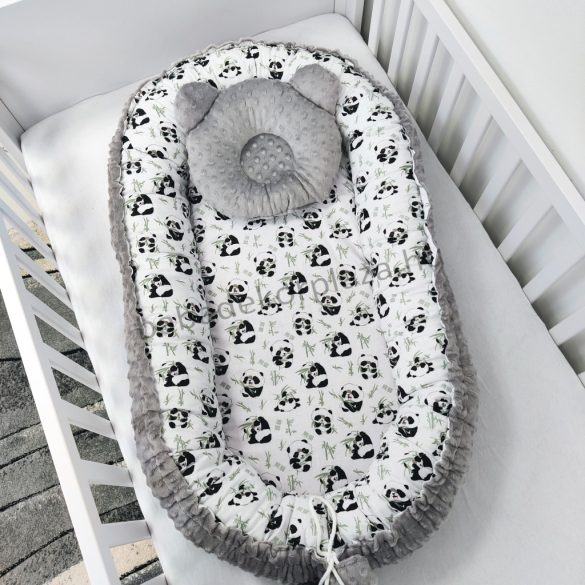 Deluxe Baby babaágynemű garnitúra babafészekkel - 5 részes - grafitszürke - pandák II.