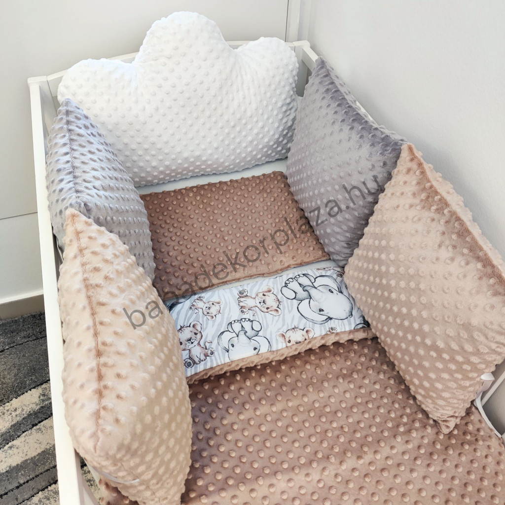Deluxe Baby babaágynemű garnitúra felhőpárnás rácsvédővel - fehér - cappuccino - grafitszürke - bébi szafari