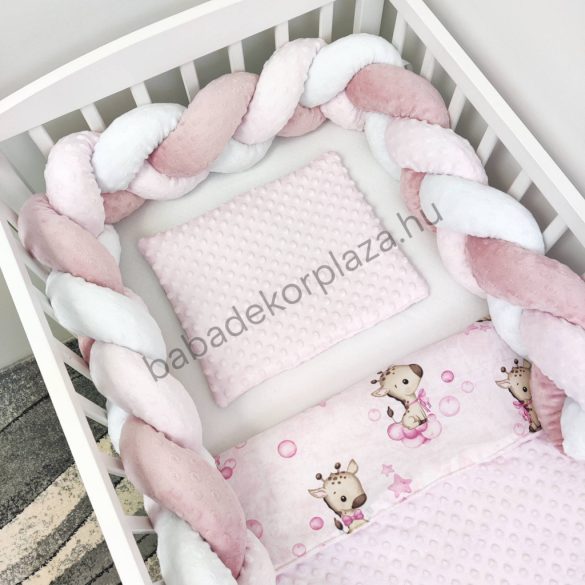 Deluxe Baby babaágynemű garnitúra babafészekkel - 5 részes - világos rózsaszín - bébi zsiráf