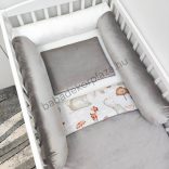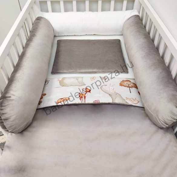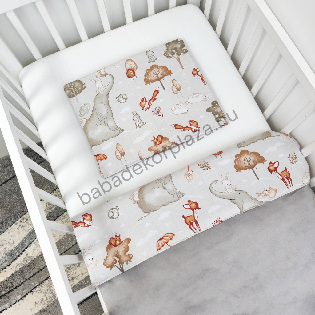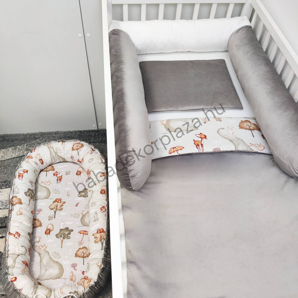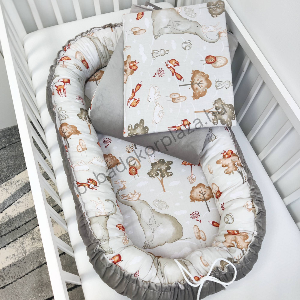 Babaágynemű garnitúra babafészekkel, hengerpárnával - 4 részes - Elefánt és barátai (Limitált széria)