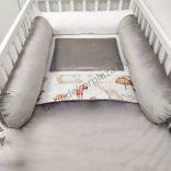 4 részes babaágynemű garnitúra puha, bababarát 100% pamut és pihe-puha bársony anyagból.
