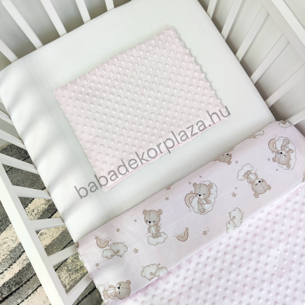 - Anyaga: egyik oldala 100% pamut, másik oldala (Minky) 100% poliészter; töltet: poliészter