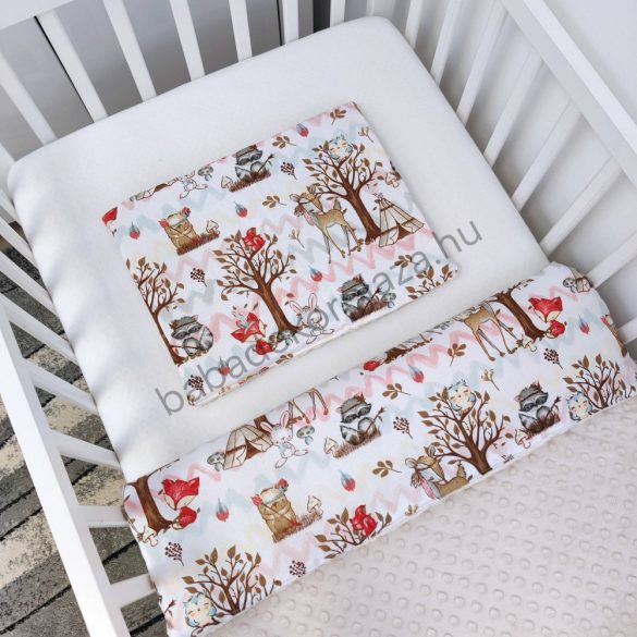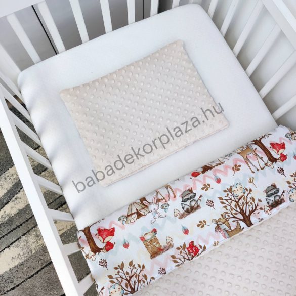 Deluxe Baby 3 részes babaágynemű garnitúra - takaró + párna + fonott rácsvédő - mogyoró - erdei állatok I.