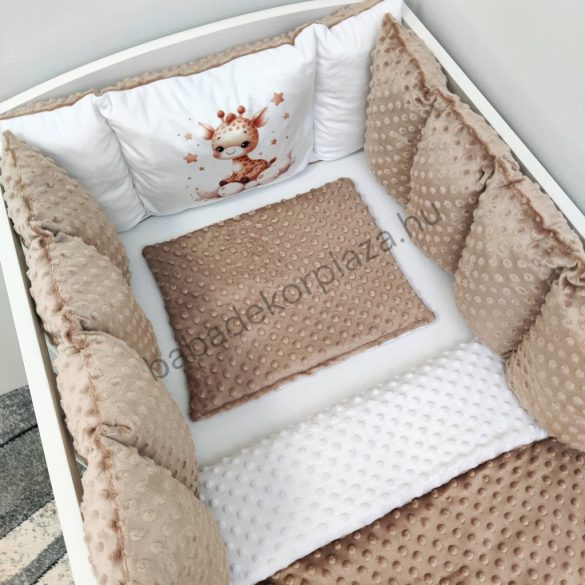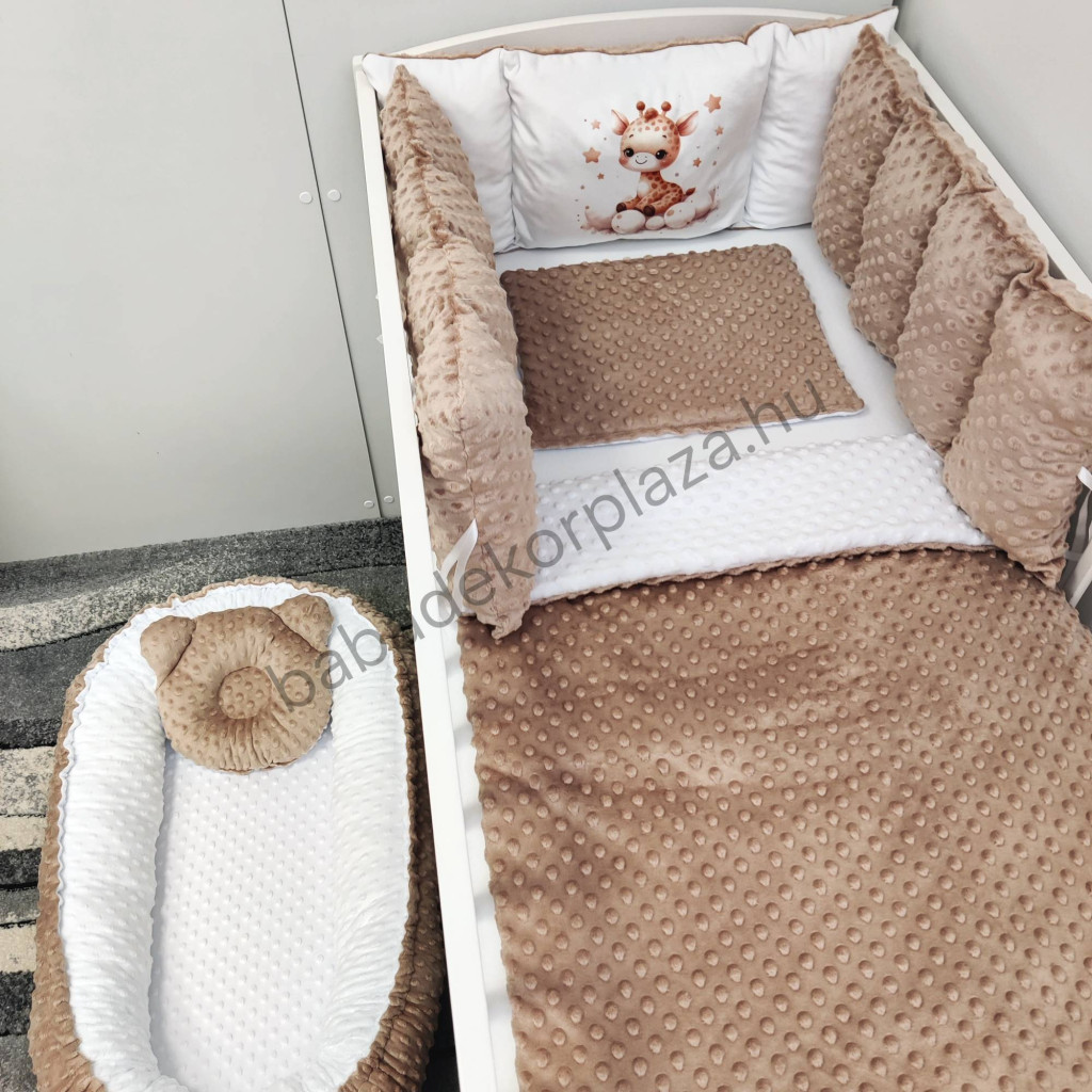 Deluxe Baby Minky babaágynemű garnitúra babafészekkel, Extra párnás rácsvédővel - Dreamland Collection - cappuccino bébi zsiráf