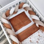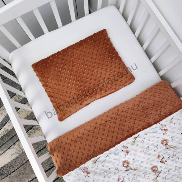 Deluxe Baby 3 részes babaágynemű garnitúra - takaró + párna + fonott rácsvédő - terrakotta - oroszlánok
