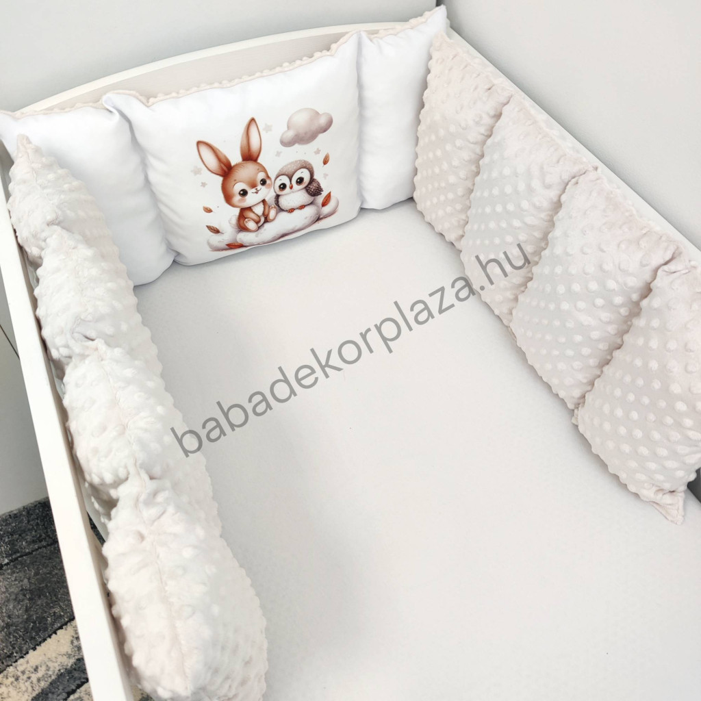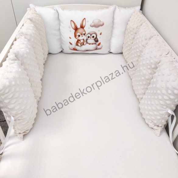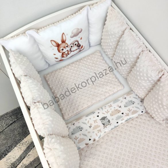 Deluxe Baby babaágynemű garnitúra Extra párnás rácsvédővel - Dreamland Collection - mogyoró nyuszi és bagoly
