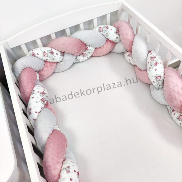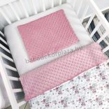 3 részes Minky babaágynemű garnitúra - takaró + párna + fonott rácsvédő - mályvarózsa - egérkék virágokkal