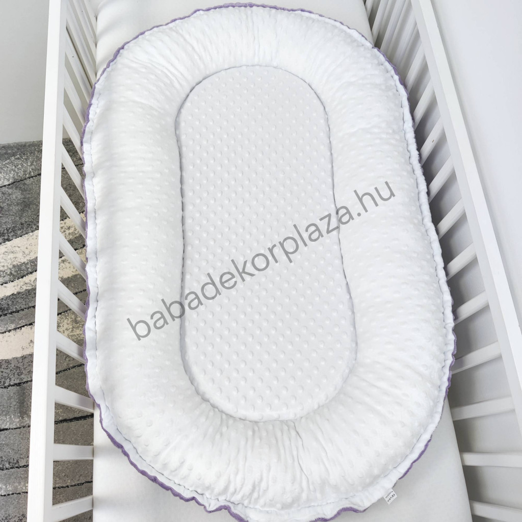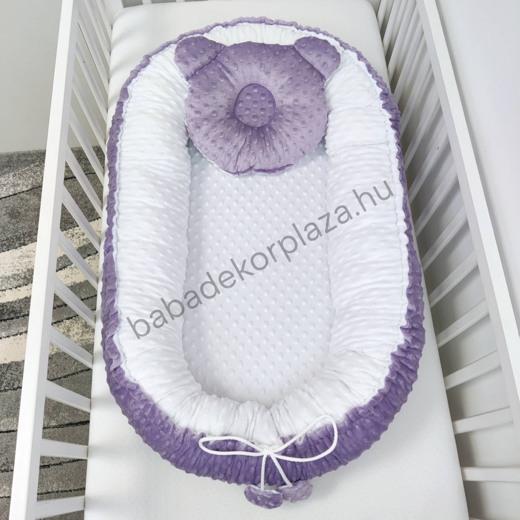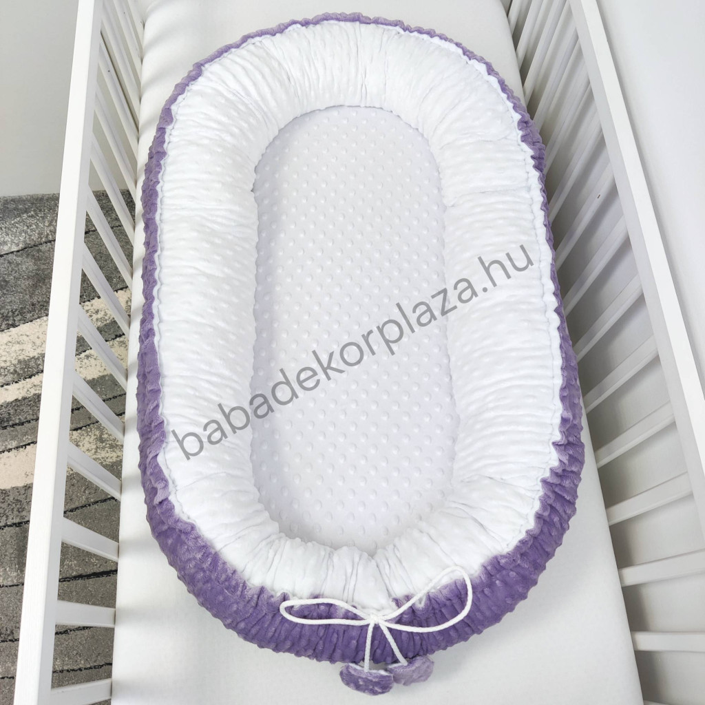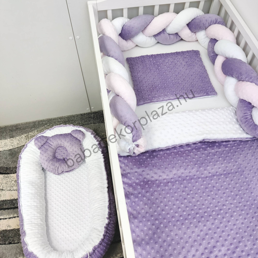 Deluxe Baby Minky babaágynemű garnitúra babafészekkel - 5 részes - orgona - fehér - világos rózsaszín
