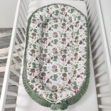 Deluxe Baby babaágynemű garnitúra babafészekkel - 5 részes - sötét zsályazöld - bébi dínók I.