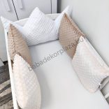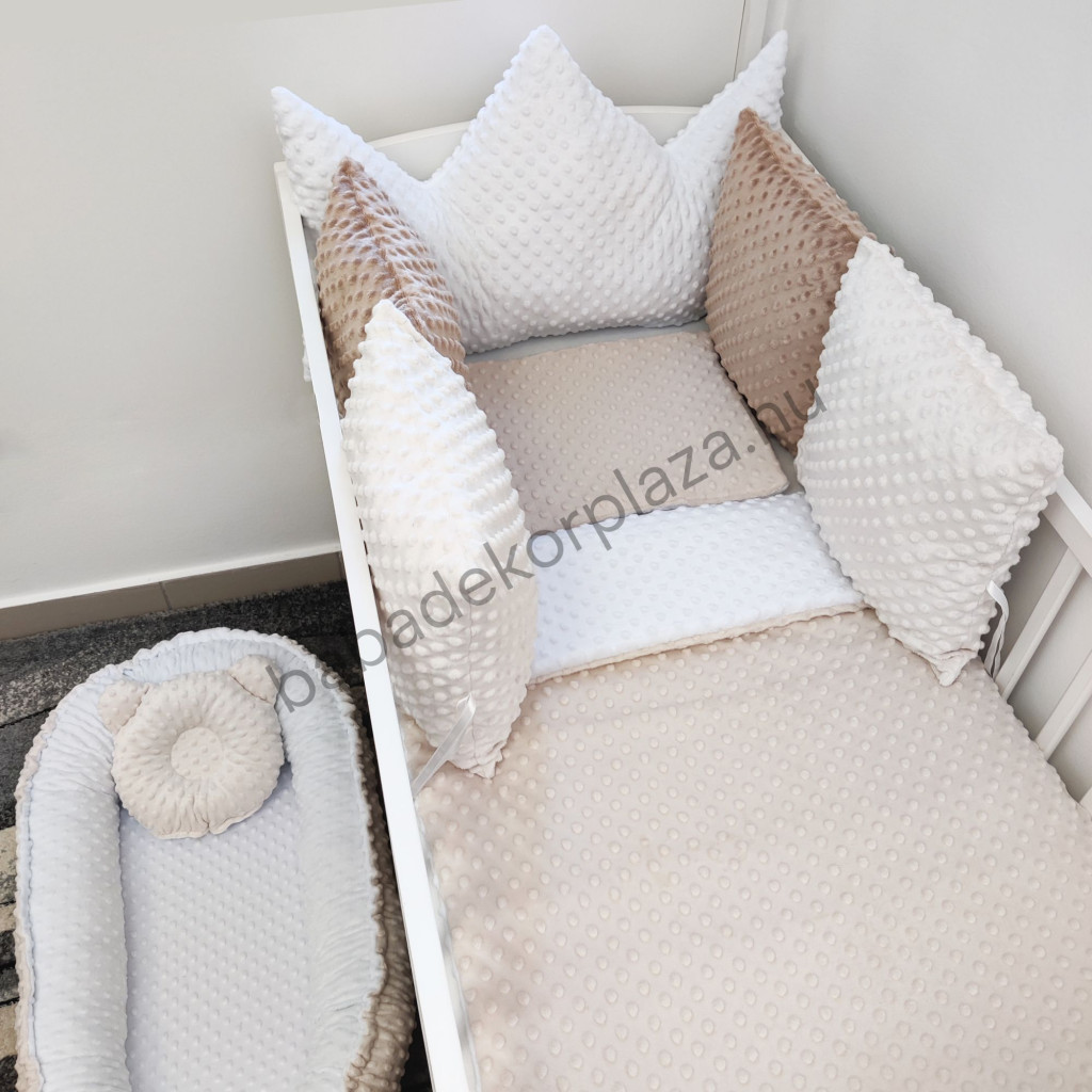 Deluxe Baby Minky babaágynemű garnitúra babafészekkel, koronapárnás rácsvédővel - fehér - mogyoró - cappuccino