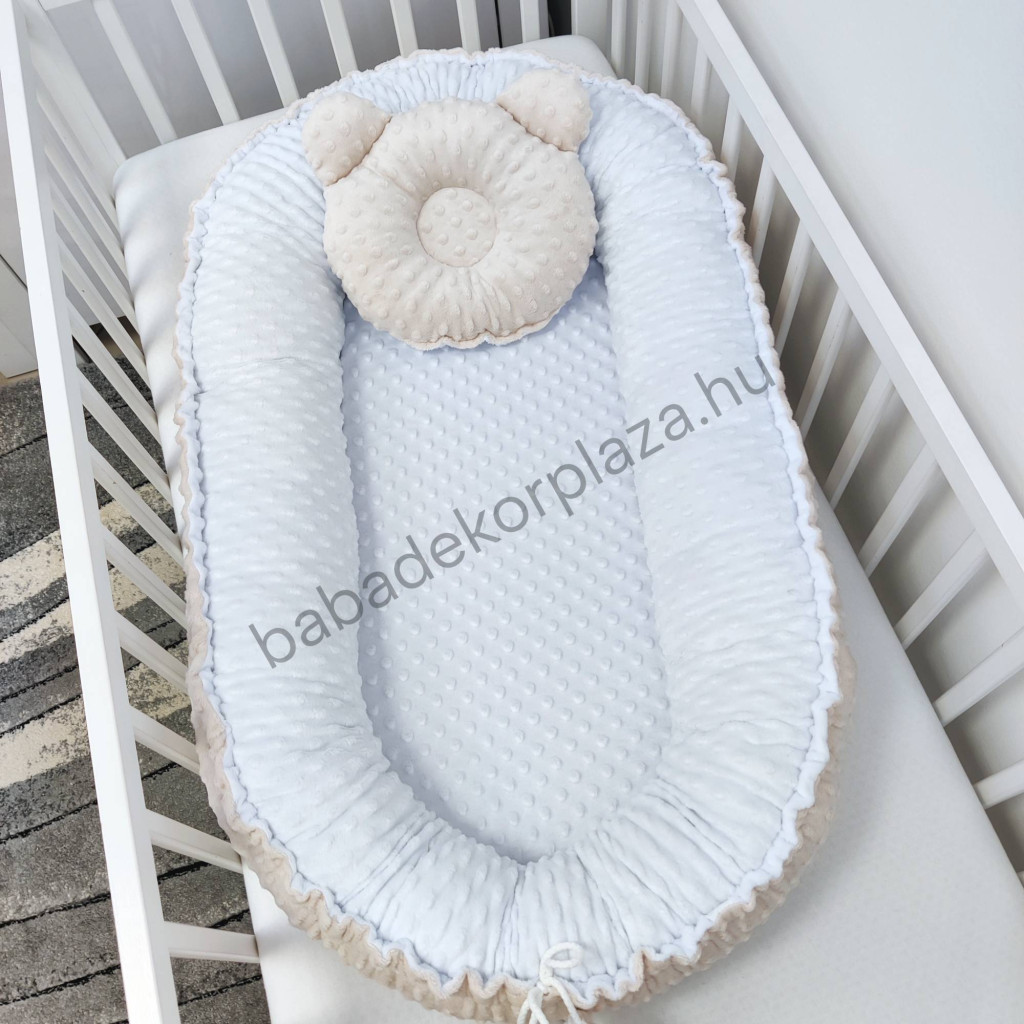Többfunkciós babafészkünk - különleges formájának köszönhetően - rendkívül praktikusan kihasználható: az első időszakban összekötve babafészekként használható, később szétnyitva játszószőnyegként vagy hempergőként is funkcionál.