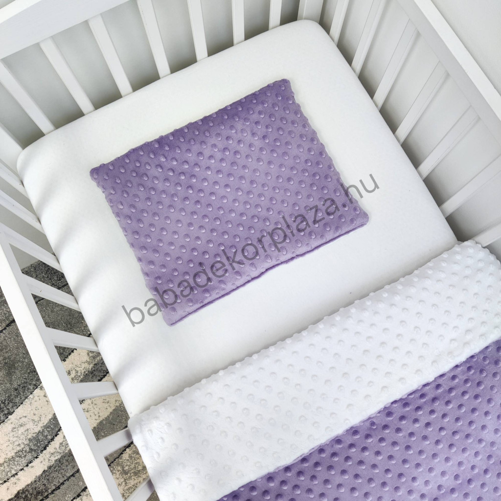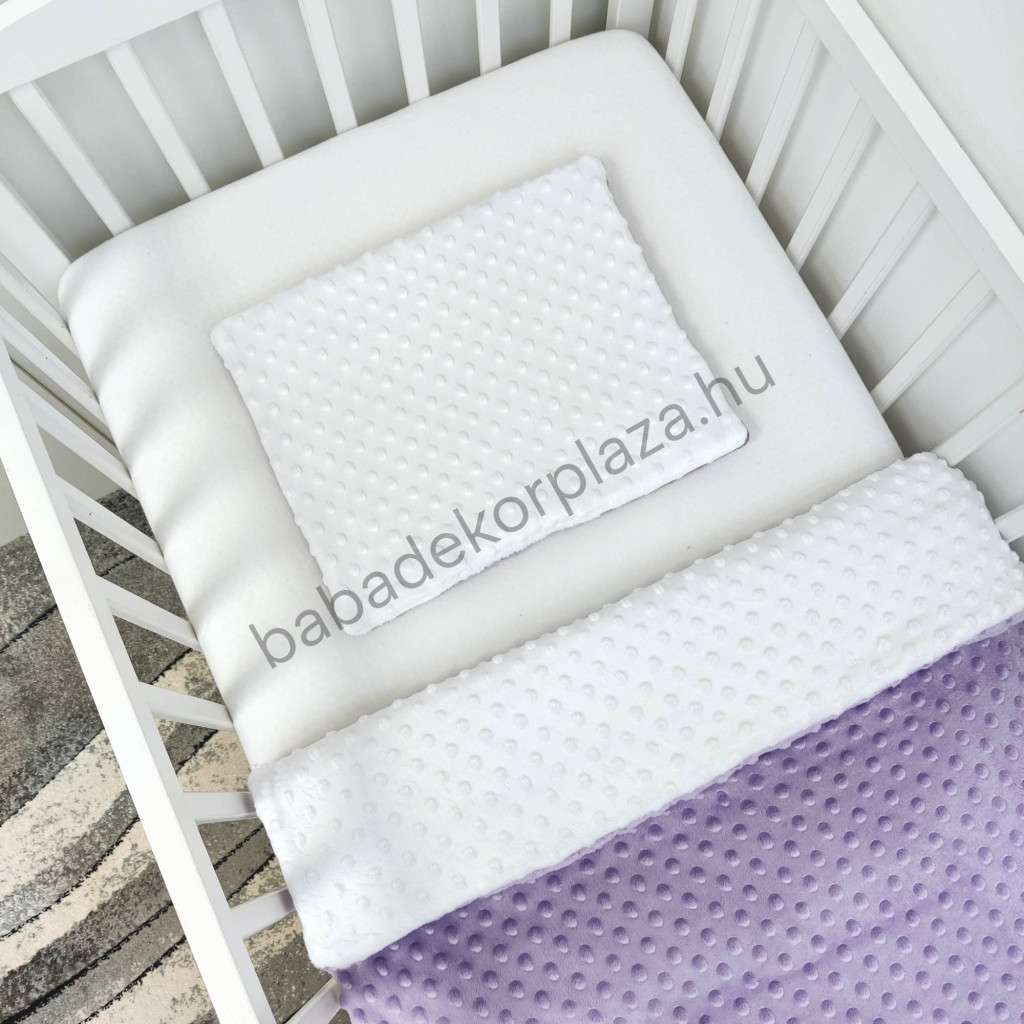 Deluxe Baby 3 részes Minky babaágynemű garnitúra - takaró + párna + fonott rácsvédő - orgona - fehér - szürke