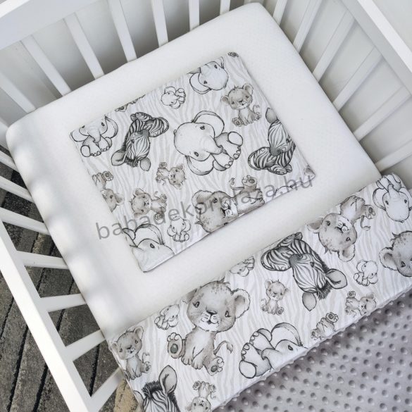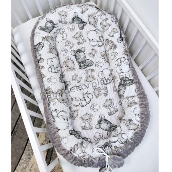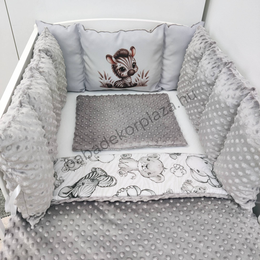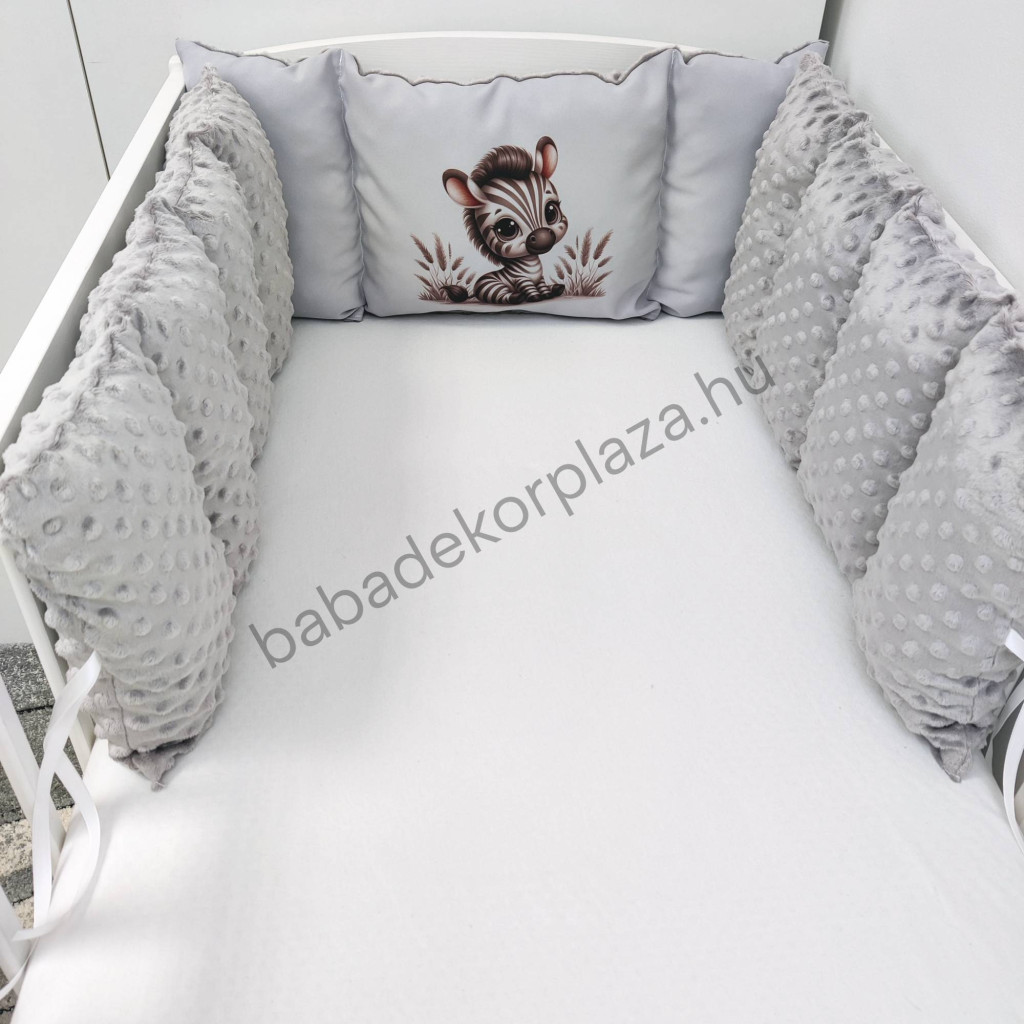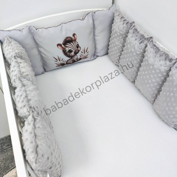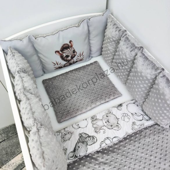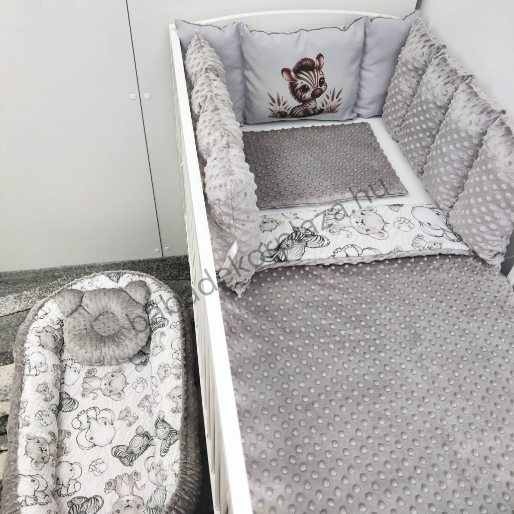 Deluxe Baby babaágynemű garnitúra babafészekkel, Extra párnás rácsvédővel - Dreamland Collection - grafitszürke - bébi szafari zebra