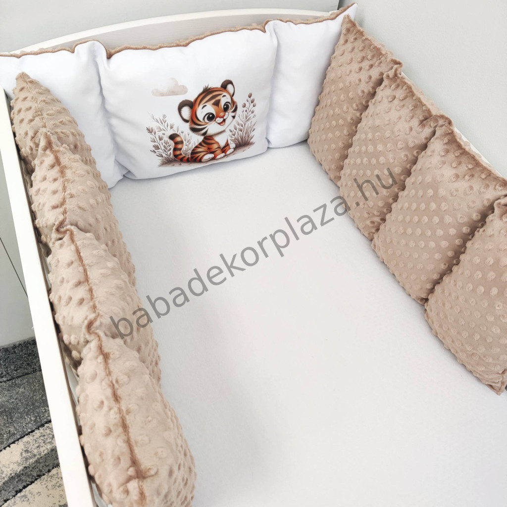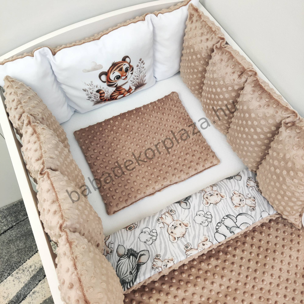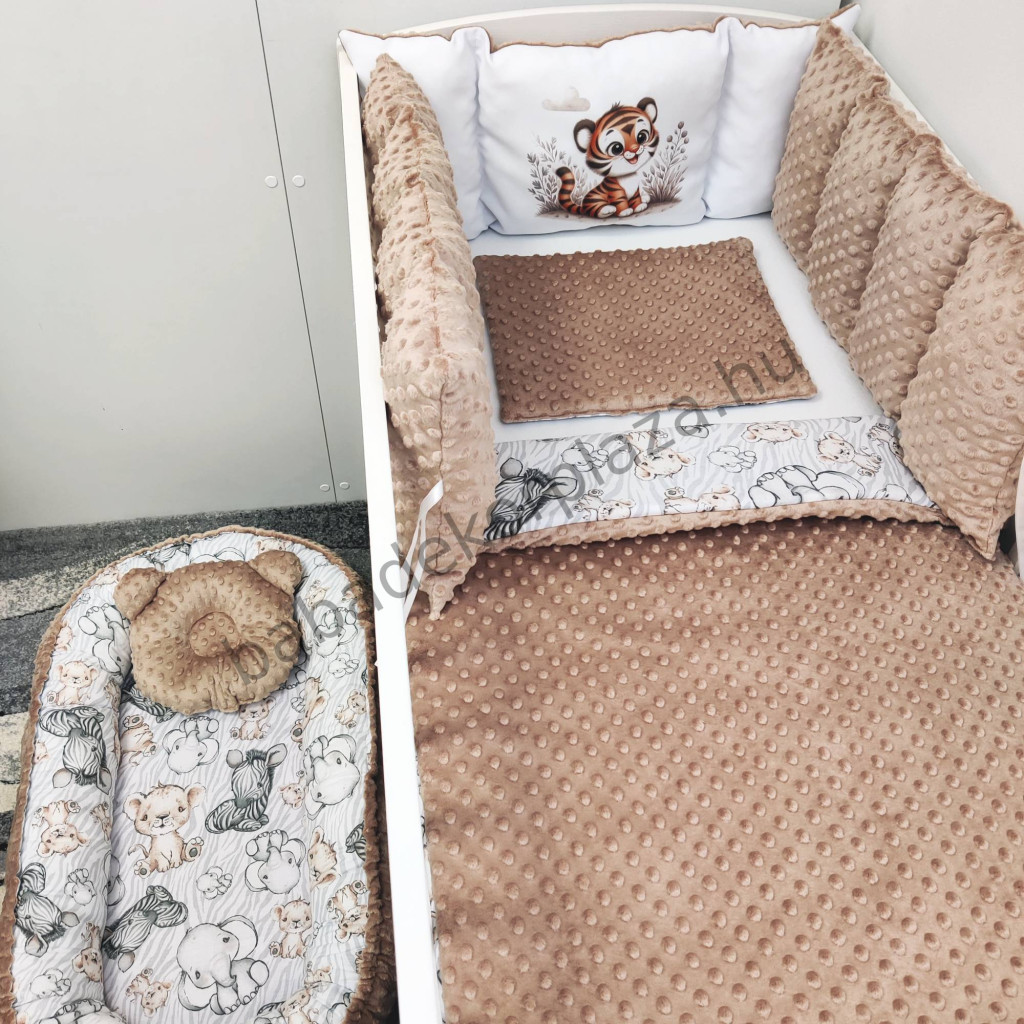 Deluxe Baby babaágynemű garnitúra babafészekkel, Extra párnás rácsvédővel - Dreamland Collection - cappuccino - bébi szafari - tigris