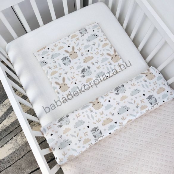 - Anyaga: egyik oldala 100% pamut, másik oldala pihe-puha Minky (100% poliészter); töltet: poliészter