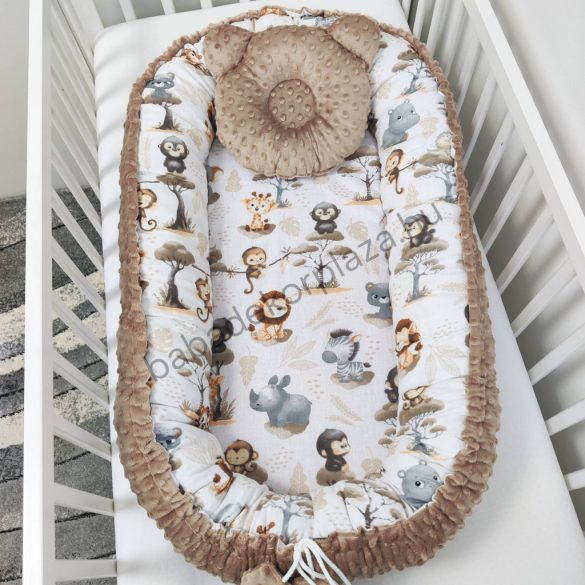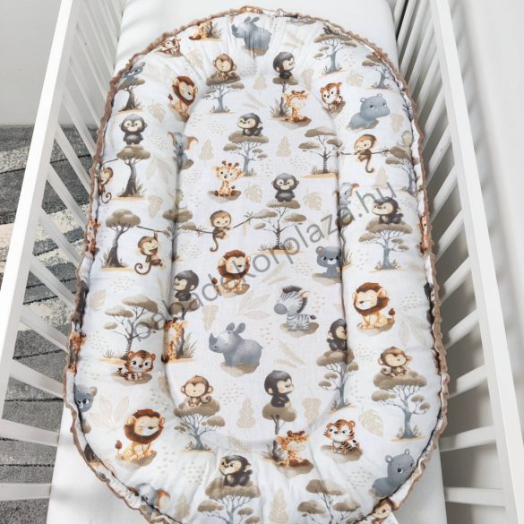 Deluxe Baby babaágynemű garnitúra babafészekkel - 5 részes - cappuccino - szafari kölykök