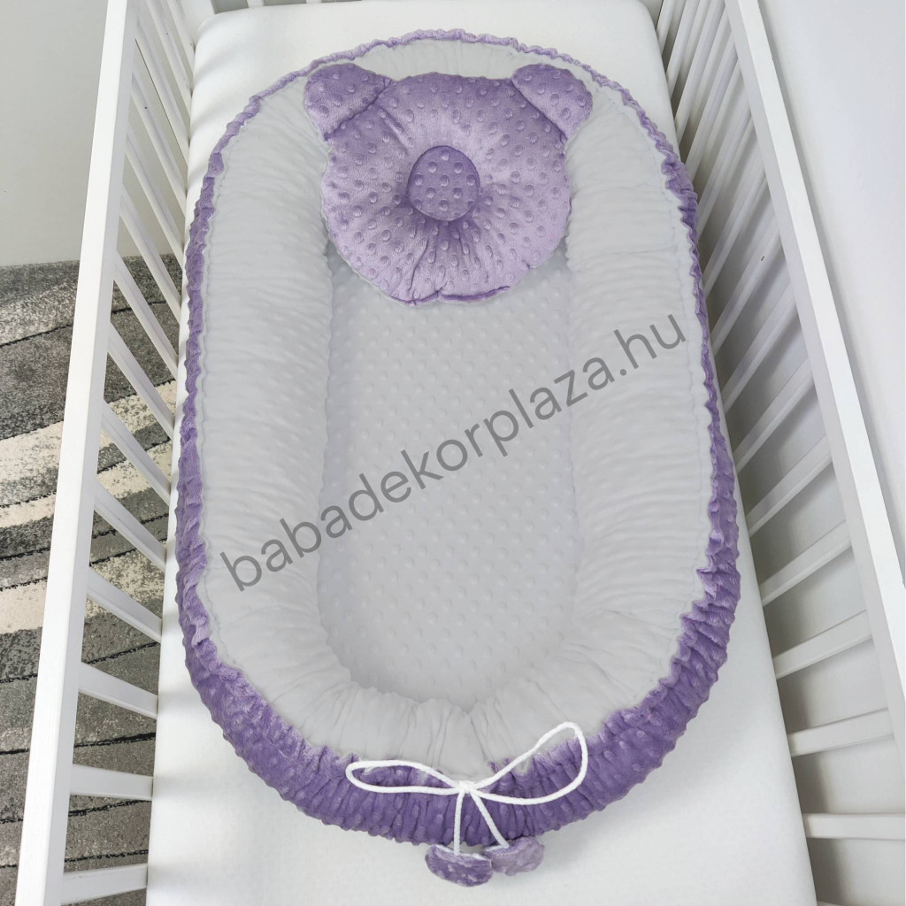 Deluxe Baby Minky babaágynemű garnitúra babafészekkel - 5 részes - orgona - szürke
