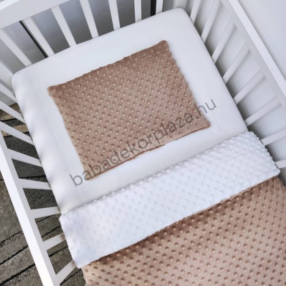 Deluxe Baby 3 részes Minky babaágynemű garnitúra - takaró + párna + fonott rácsvédő - cappuccino - fehér - grafitszürke