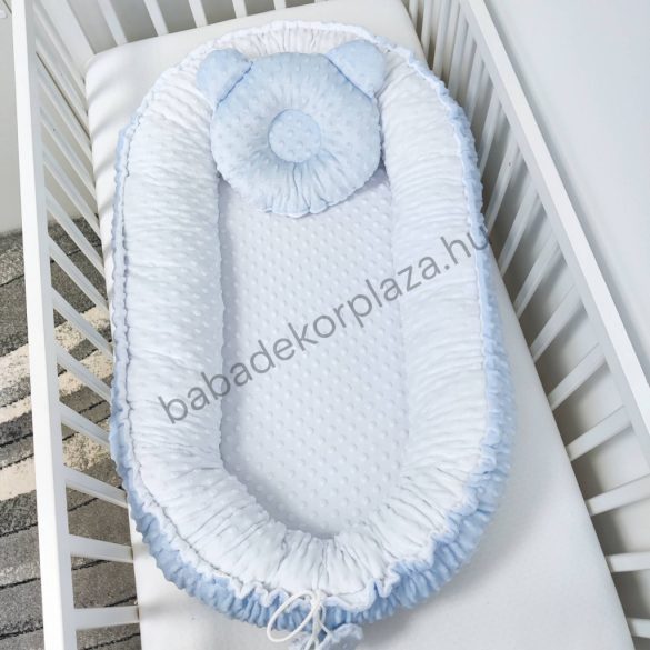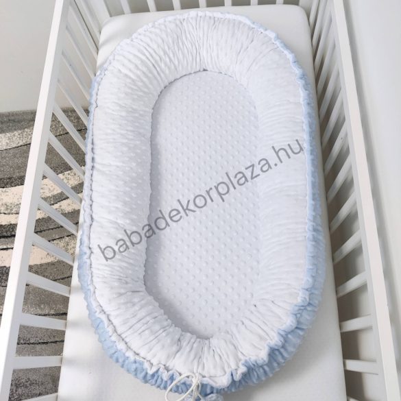Deluxe Baby Minky babaágynemű garnitúra babafészekkel - 5 részes - világoskék - fehér - szürke
