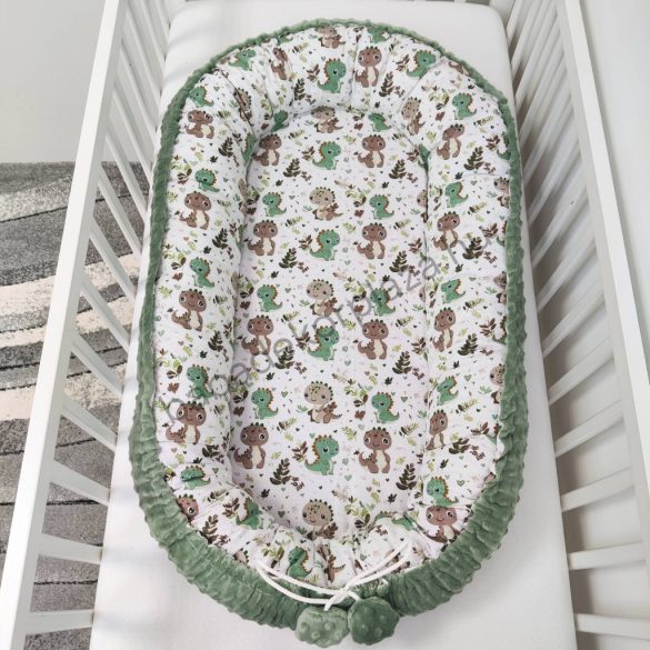 Deluxe Baby babaágynemű garnitúra babafészekkel - 5 részes - sötét zsályazöld - bébi dínók II.