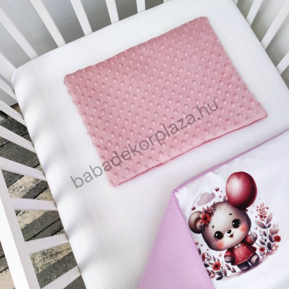 Deluxe Baby babaágynemű garnitúra babafészekkel - 5 részes - Mályvarózsa - macilány léggömbbel I.