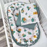 Többfunkciós babafészkünk - különleges formájának köszönhetően - rendkívül praktikusan kihasználható: az első időszakban összekötve babafészekként használható, később szétnyitva játszószőnyegként vagy hempergőként is funkcionál.